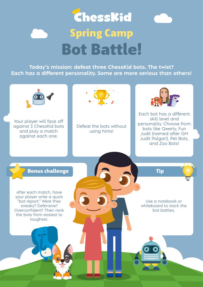Hey parents! Spring break is here and guess what?...There’s no need to leave the house to keep the kids entertained! We’ve got you covered with the ChessKid Spring Break Challenge: five days of exciting chess endeavors that develop essential skills while keeping the fun going.
