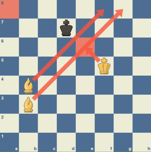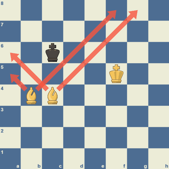 If your bishops get separated, the wall weakens, and the enemy king might escape. But when they are side by side, you can easily move the wall up the board.